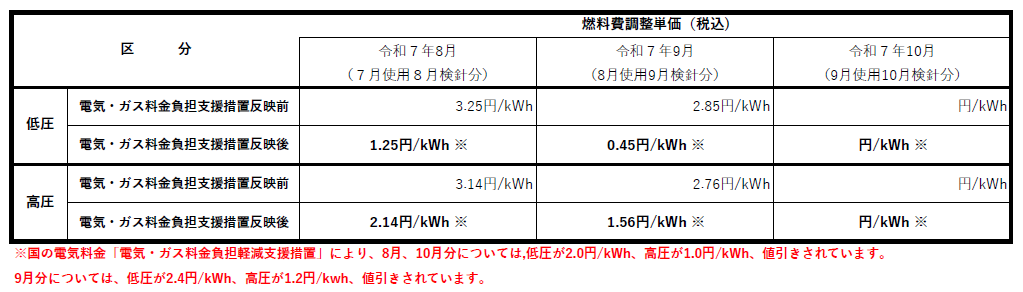 ついては、当社においても2025年7月使用分から9月使用分までの電気料金