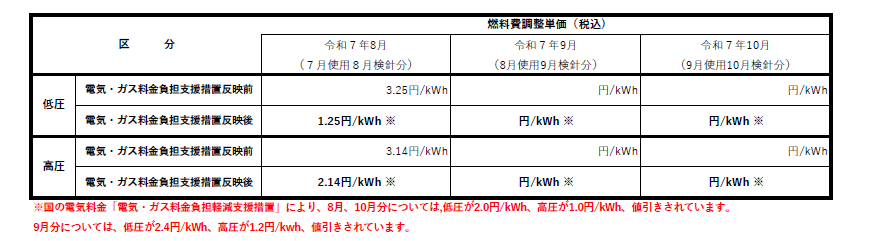 ついては、当社においても2025年7月使用分から9月使用分までの電気料金